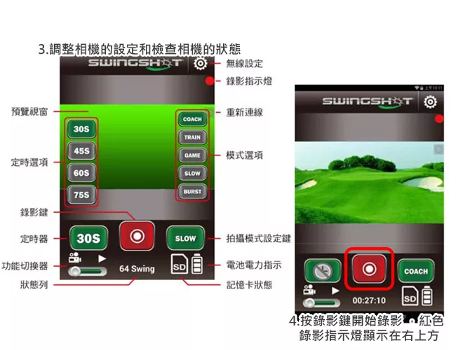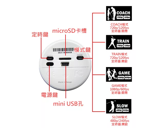 ★國際專利台灣製造★一鍵錄影,WiFi即時觀看★四種錄影模式:教練/訓練/遊戲/慢動作